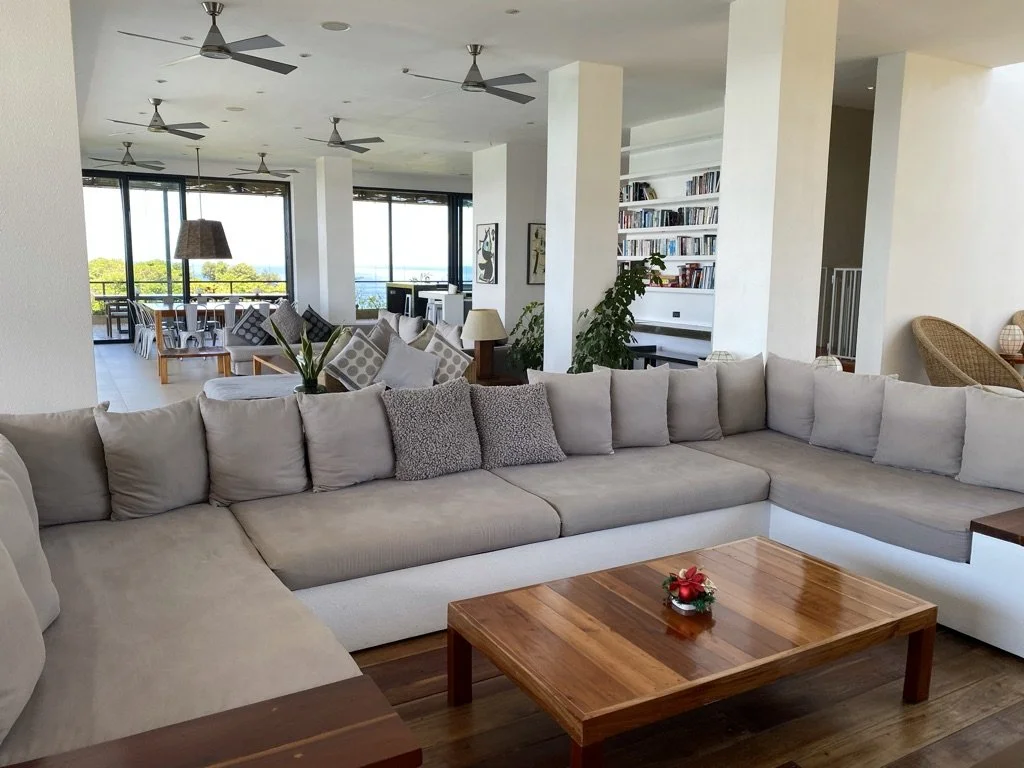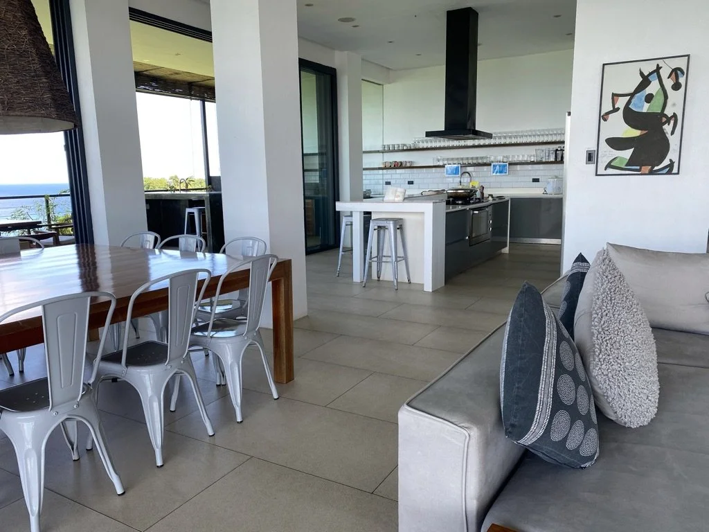 Large sliding doors allow this triple aspect open plan living area to make the most of the tropical breeze flowing throughout. Cosy enclaves around the pool provide perfect settings for catching up with friends or just reading a book. The dark slate infinity pool is always at a very inviting temperature and the Hi-Fi system with surrounding speakers allow you to float around listening to your favourite tunes. This can be done any time throughout the night too as the house is exclusively yours.